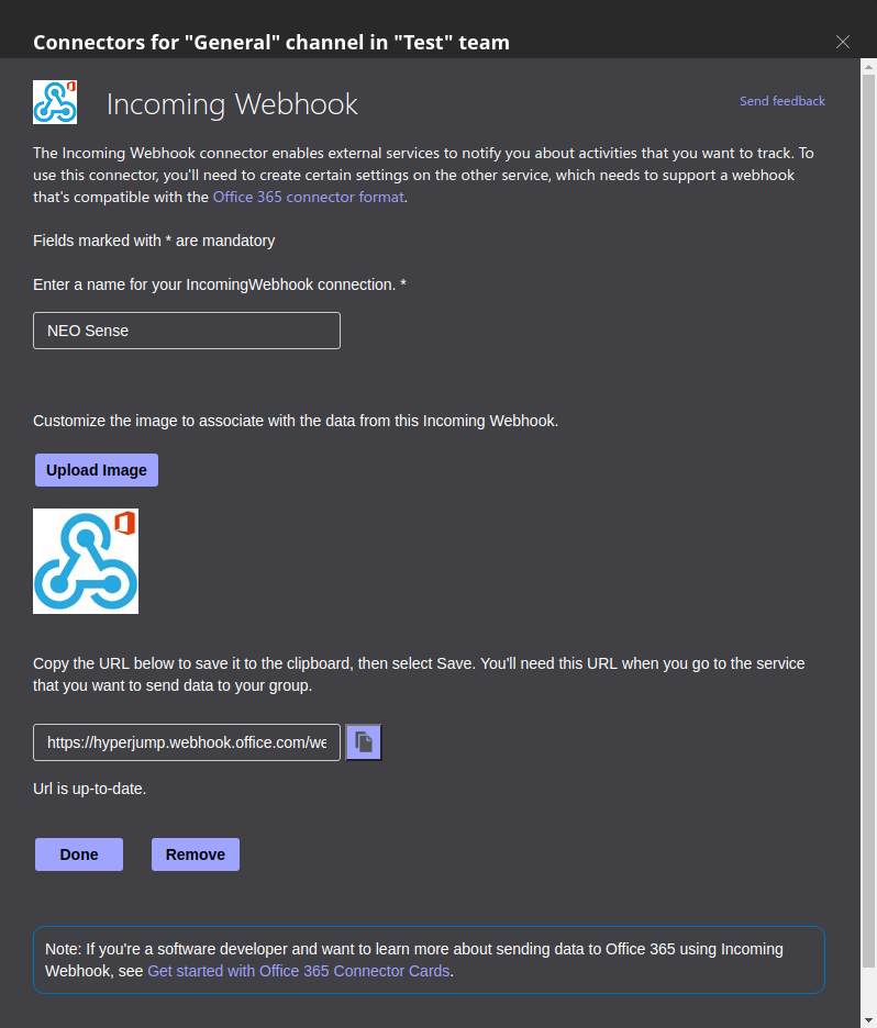 This article will show you how to integrate NEO Sense with Microsoft Teams using Incoming Webhook